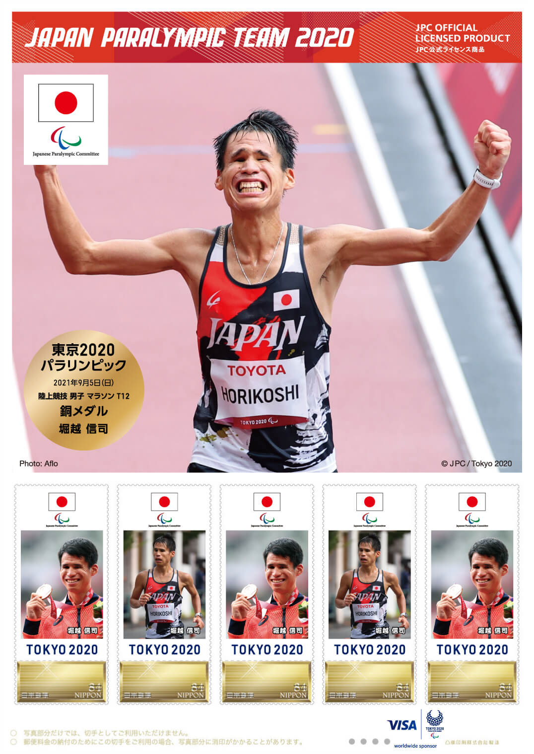 東京2020パラリンピック日本代表選手 メダリスト公式フレーム切手(陸上競技 男子 マラソン T12 堀越 信司選手)2021年9月7日