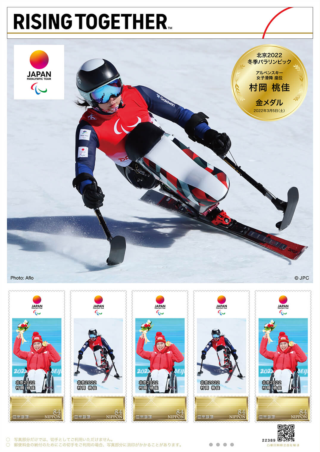 北京2022冬季パラリンピック日本代表選手 メダリスト公式フレーム切手の販売(アルペンスキー 女子滑降 座位 村岡 桃佳 選手)2022年3月7日