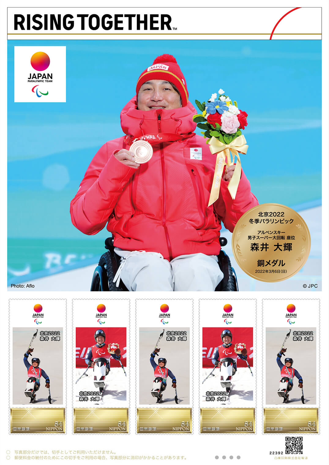 北京2022冬季パラリンピック日本代表選手 メダリスト公式フレーム切手の販売(アルペンスキー 男子スーパー大回転 座位 森井 大輝 選手)2022年3月8日