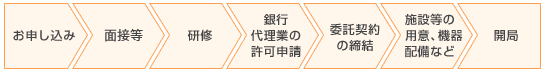 1)、現金を保管する金庫、カウンター、電話機、ファクシミリ、コピー機などは、開局の際に受託者の方にご準備いただきます。開局に当たっては担当者がサポートさせていただきます。 - 貯金窓口端末機、ノートパソコンおよびプリンタ、防犯機器、郵便はかり、ユニフォームなどは当社にて準備させていただきます。