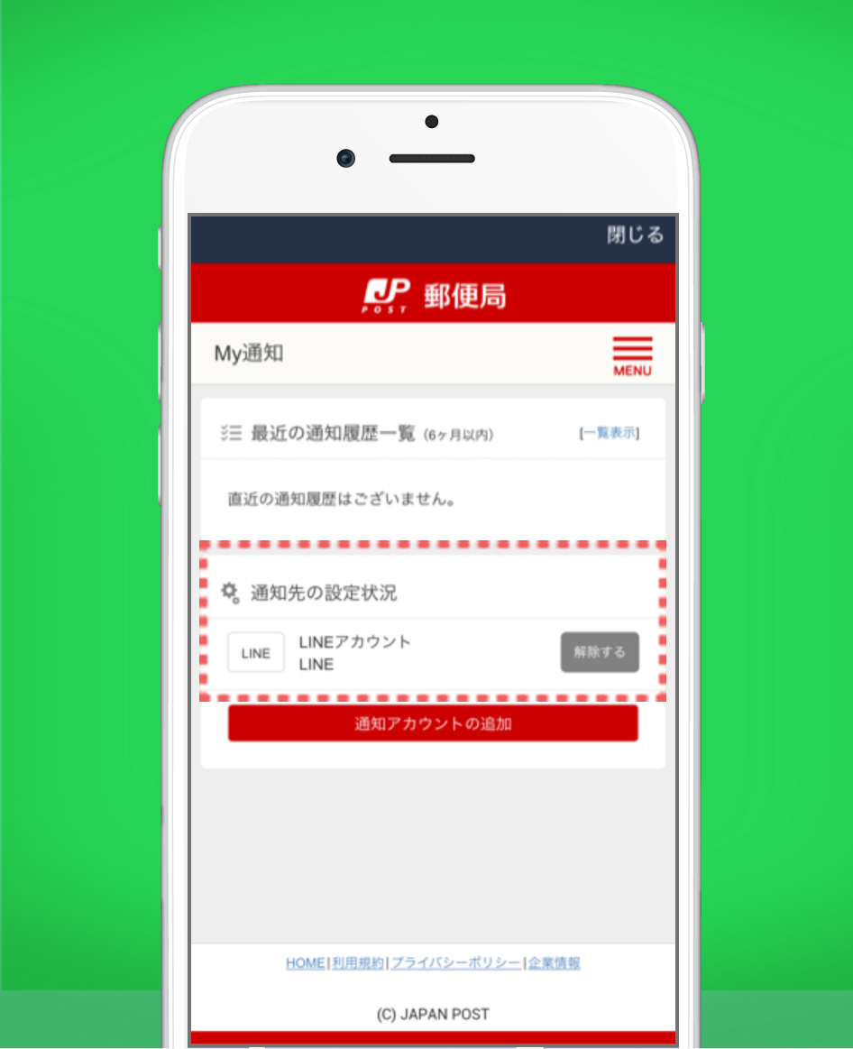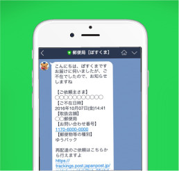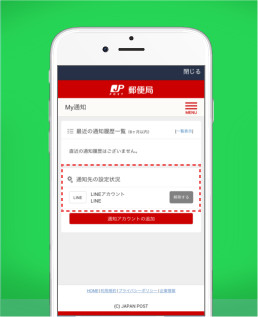 ご自身のLINEアカウントとゆうID(My通知登録)を連携することで、配達状況の通知がLINEに届くようになるよ。