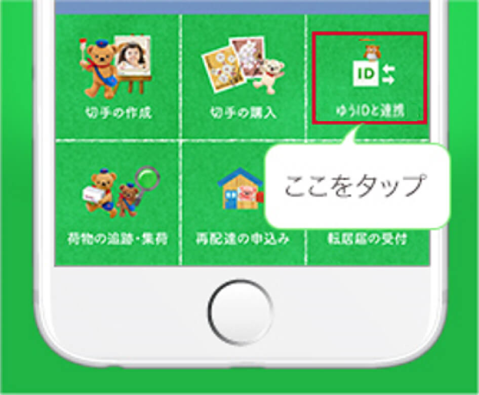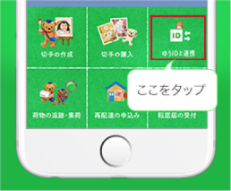 ②トーク画面の下メニューから「ゆうIDと連携」をタップしてくださいね。