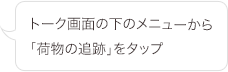 荷物の確認を行なうには、トーク画面の下メニューから「荷物の追跡」をタップしてくださいね。