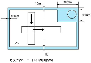 料金別納(料金を現金等で支払うものに限ります。)または料金後納とするバーコード付郵便物について、カスタマバーコードの印字可能領域を、次の図のとおり拡大します。(横に長く使用する場合の例)