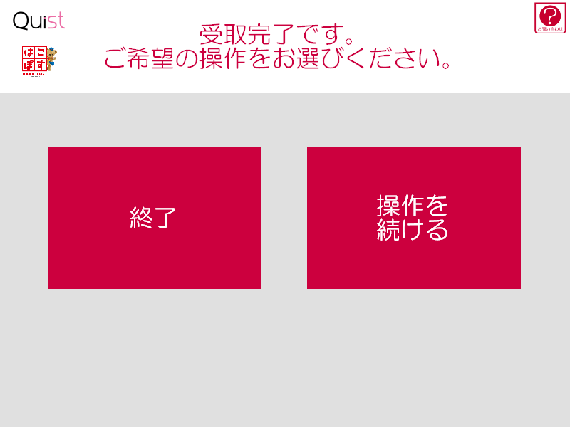 - 続けて受け取る荷物等がある場合は、〔操作を続ける〕を押します。