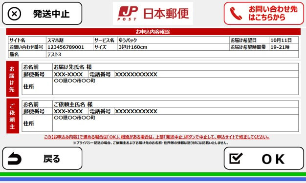- ③「お申し込み内容」をご確認の上、相違ない場合は〔OK〕を押してください。