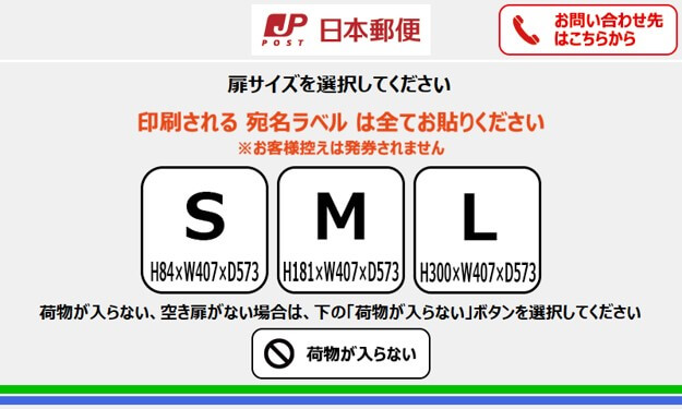 - ⑦荷物を入れるボックスのサイズを選択してください。
