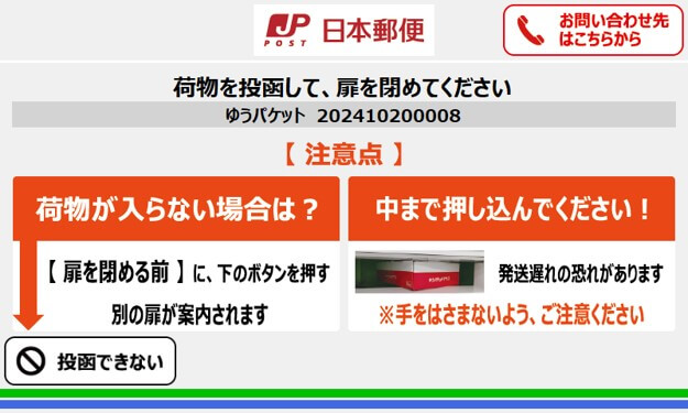 - ⑦投かん用の扉が開きますので、荷物を投かんしてください。