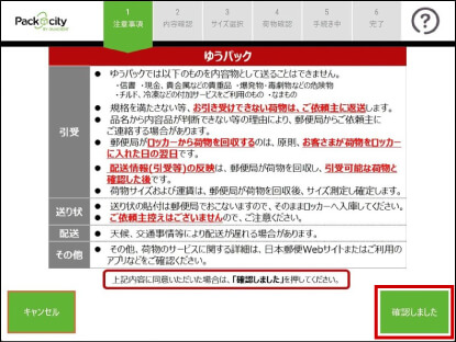 - 〔確認しました〕を押すと、キャンセルはできなくなりますのでご注意ください。