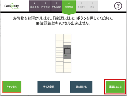 - ⑧開いたボックスに荷物を入庫して、扉を閉めてください。