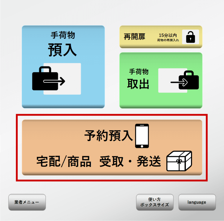 - 誤って、荷物を取り出す前に扉を閉めてしまった場合は、再度②~③を動作を行うと取り出すことができます(10分程度の間、20回まで)