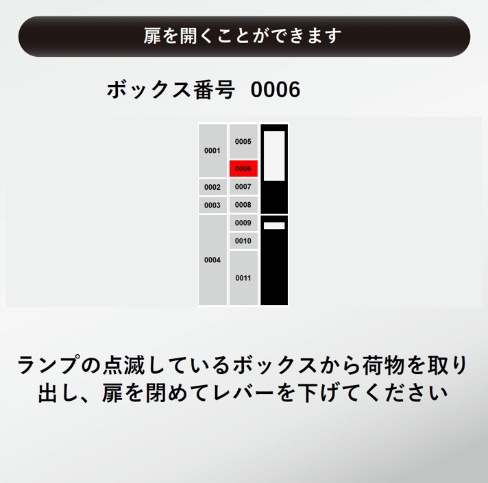 - ③ボックスの扉が自動で開きますので、荷物を取り出し、扉を閉めてください。