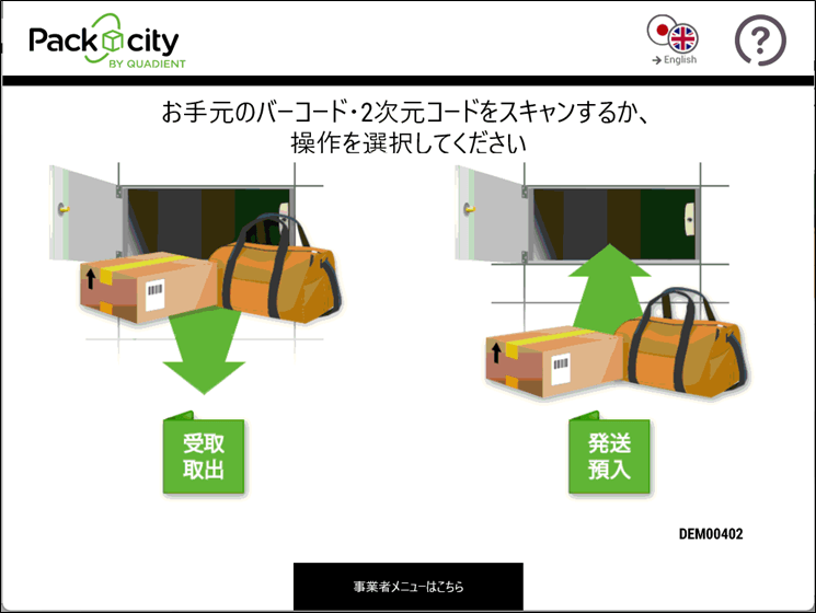 - ④荷物が入ったボックスが自動できますので、荷物を取り出します。