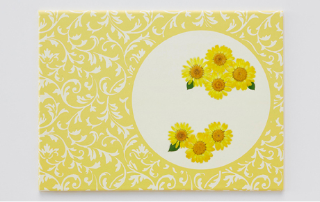 押し花には、ノースポールを使用。ぬくもりある色調が、華やかで気品に満ちた雰囲気を醸し出します。