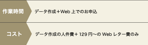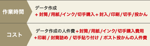 ※印刷・封筒詰め等の作業が不要な為、2分としています。