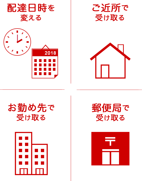 - 「20時~21時」の配達希望時間帯は2024年9月30日をもって廃止となりました。