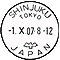 | 札幌、旭川、函館、釧路、仙台、青森、盛岡、秋田、山形、福島、水戸、宇都宮、前橋、さいたま、千葉、横浜、甲府、神田、京橋、芝、上野、渋谷、新宿、長野、新潟、富山、福井、金沢、名古屋、静岡、津、岐阜、大津、大阪、大阪東、奈良、和歌山、京都、神戸、岡山、鳥取、松江、広島東、福山、山口、広島、徳島、高松、高知、松山、福岡、北九州、佐賀、大分、宮崎、長崎、熊本、鹿児島及び那覇 | (1)及び(2)の初日印