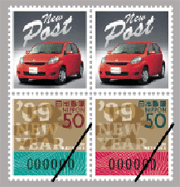 お年玉付年賀切手の上部に設けたタブ部分に写真などを加刷し、企業等独自の年賀切手