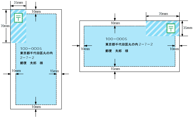 色の範囲に記載してください。(斜線部分は、消印に使用します。郵便番号やあて名を記載しないでください。)